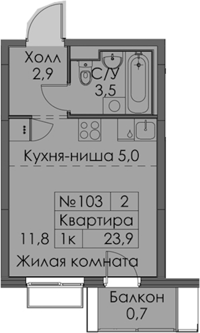 - Площадь23,9 м2