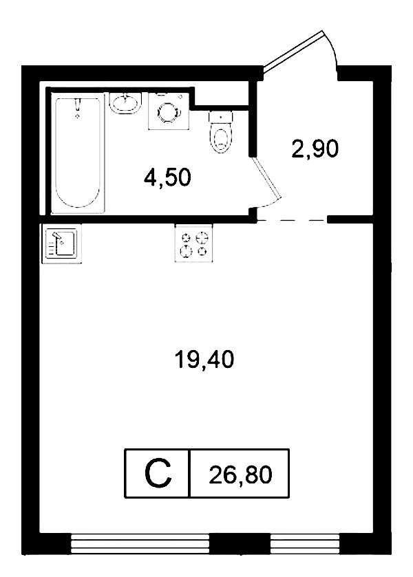 Квартира-студия на 10-ом этаже 26,8 кв.м