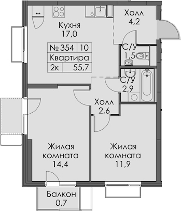 - Площадь55,7 м2