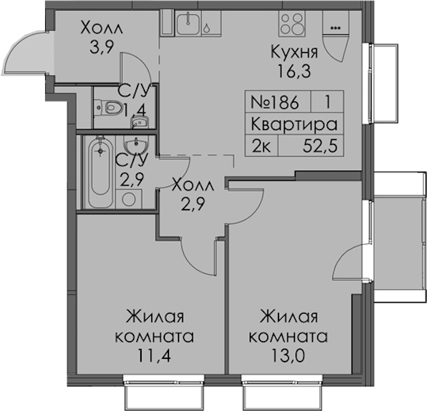 • Площадь52,5 м2