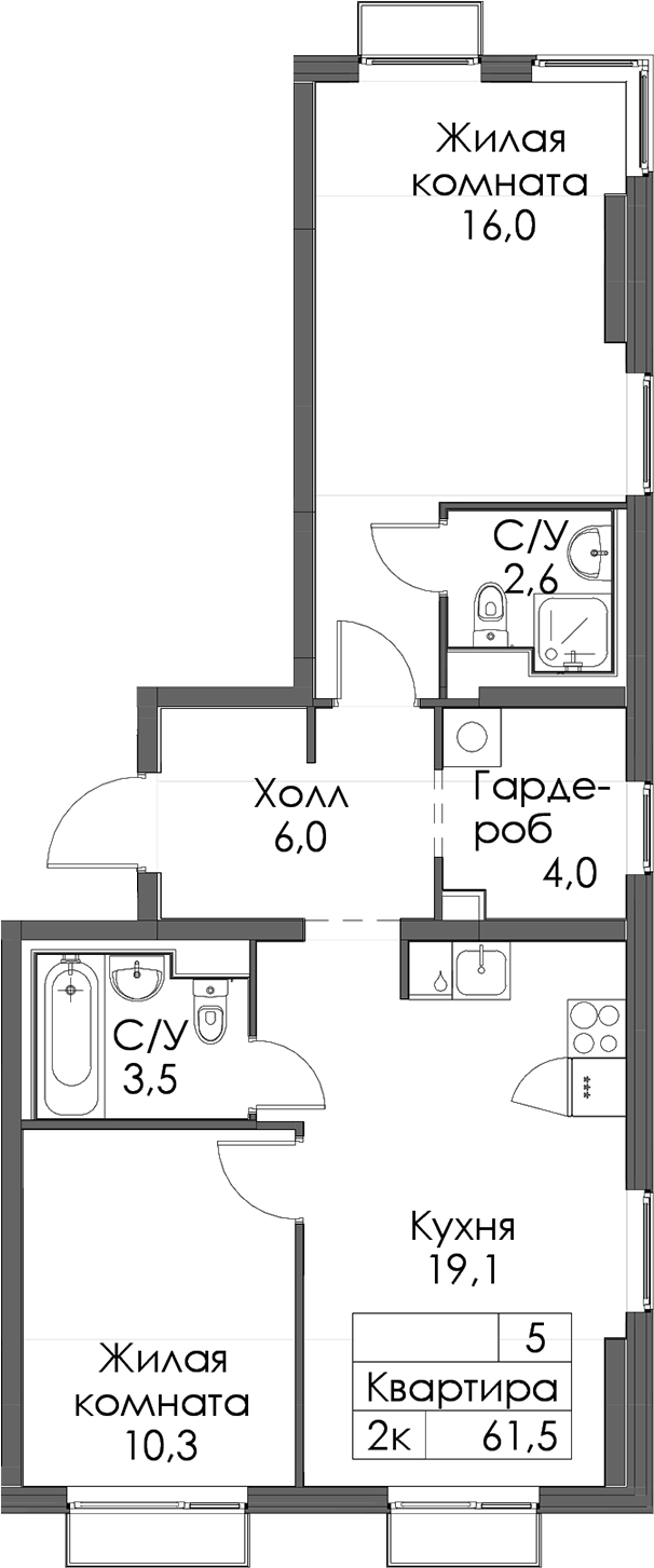 - Площадь61,5 м2