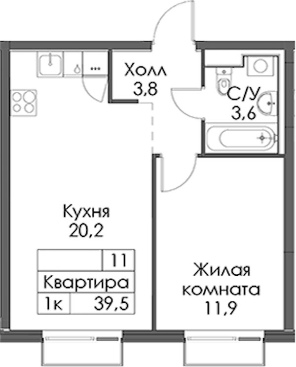 - Площадь39,5 м2