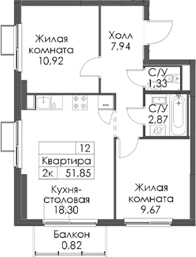 • Площадь51,85 м2