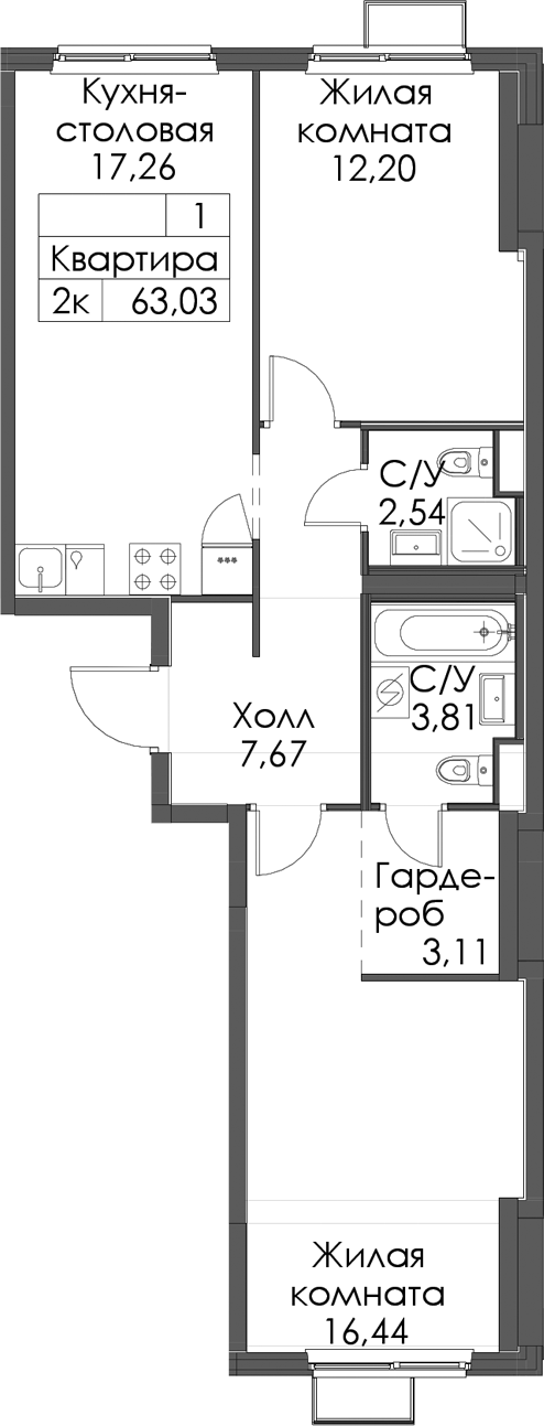• Площадь63,03 м2