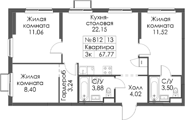 - Площадь67,77 м2