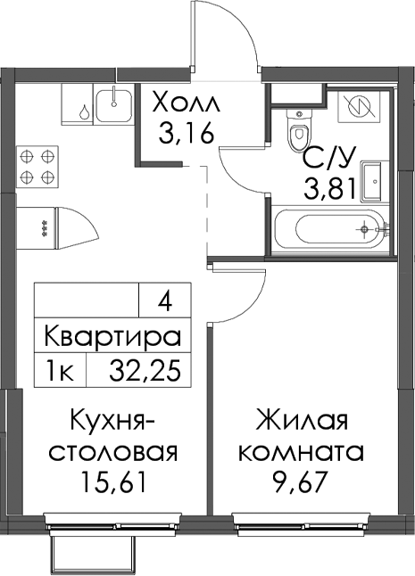 - Площадь32,25 м2