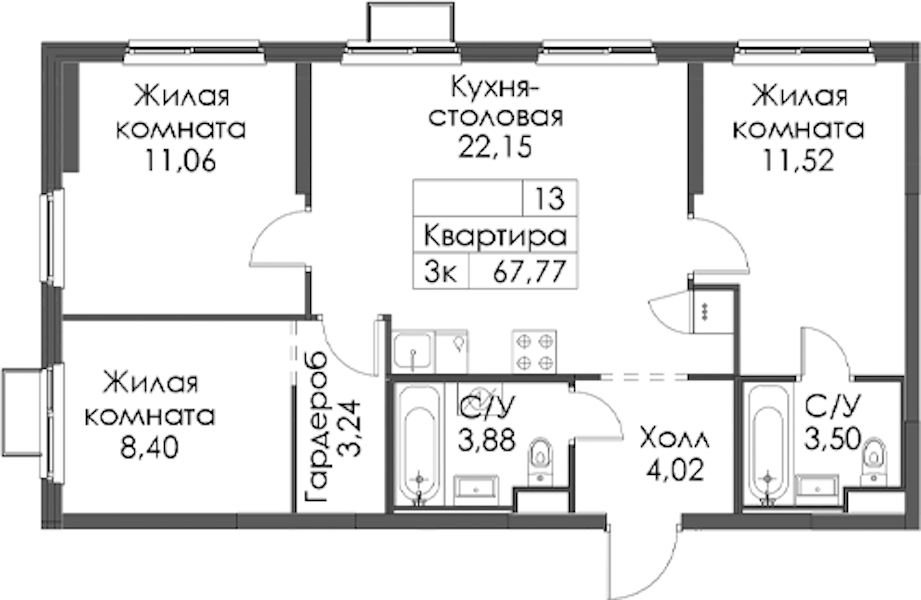 - Площадь67,77 м2