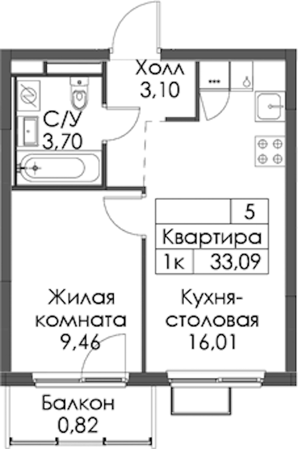 • Площадь33,09 м2