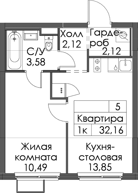 - Площадь32,16 м2