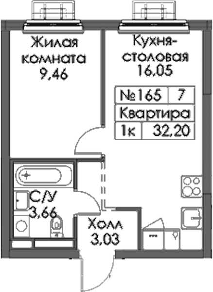 - Площадь32,2 м2
