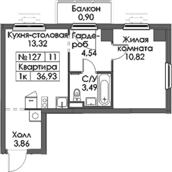 - Площадь36,93 м2