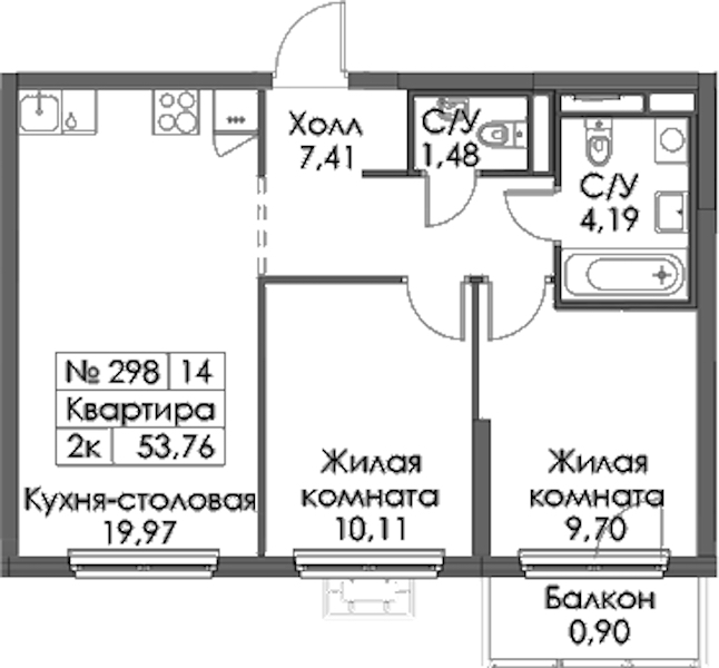 - Площадь53,76 м2
