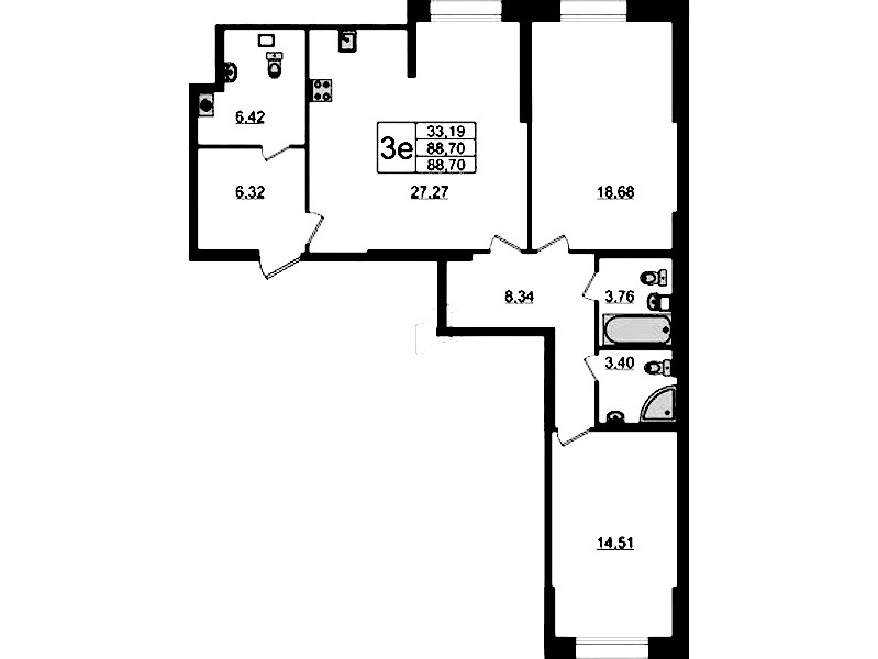Двухкомнатная квартира на 1-ом этаже 88,7 кв.м