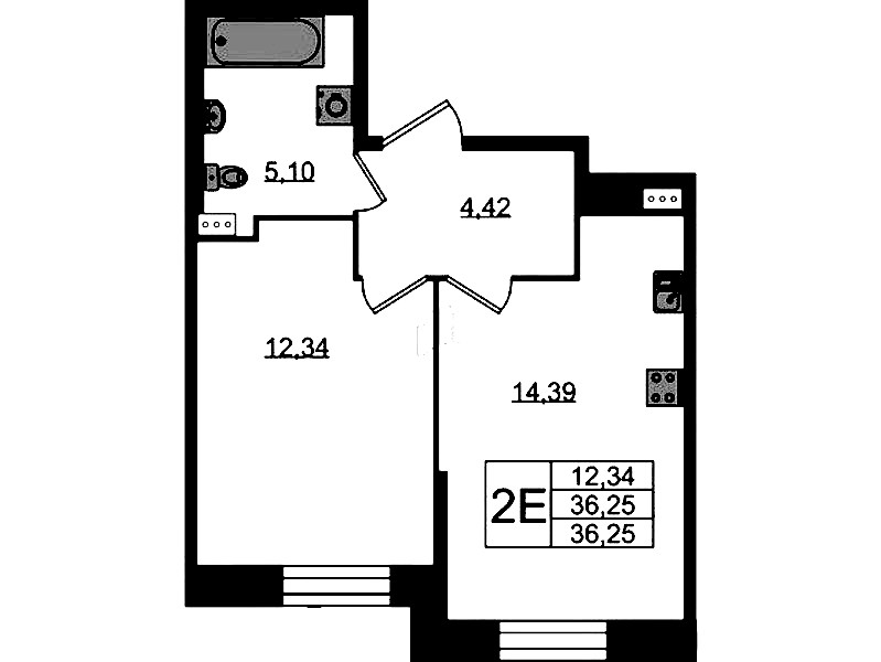 Однокомнатная квартира на 1-ом этаже 36,25 кв.м