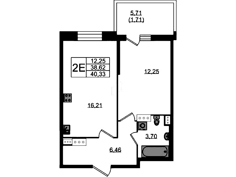 - Площадь40,33 м2