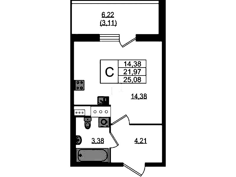 Квартира-студия на 12-ом этаже 23,7 кв.м
