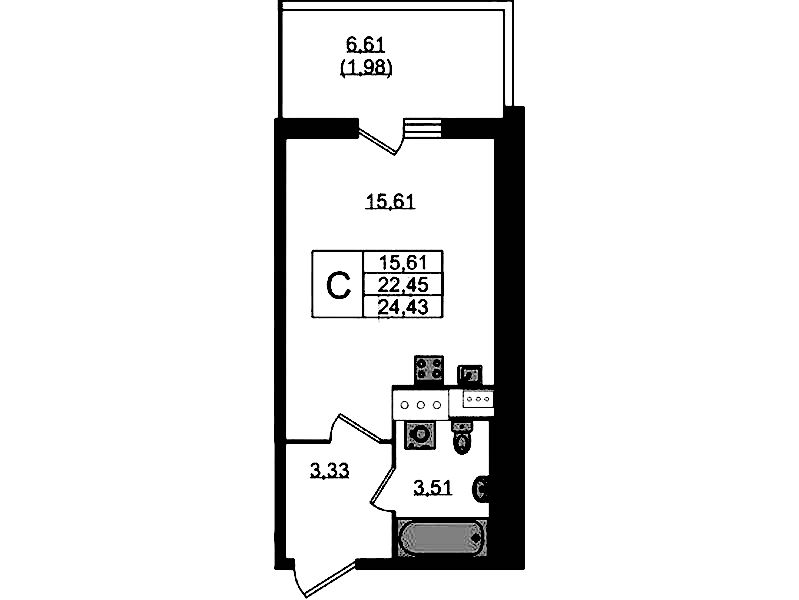 - Площадь24,3 м2