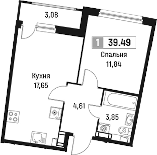 - Площадь39,49 м2