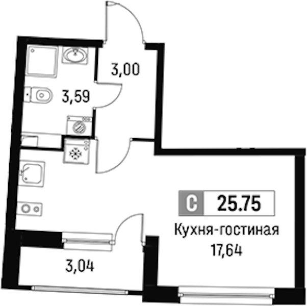 - Площадь25,72 м2