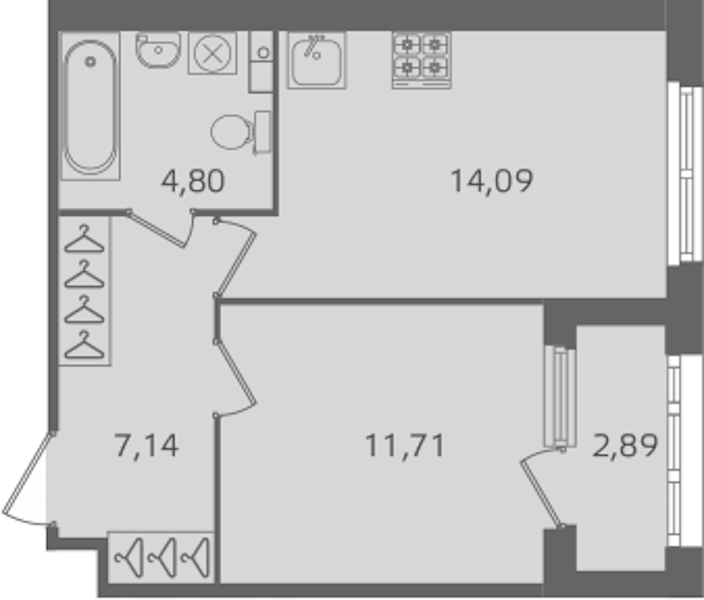 - Площадь кухни14,09 м2
