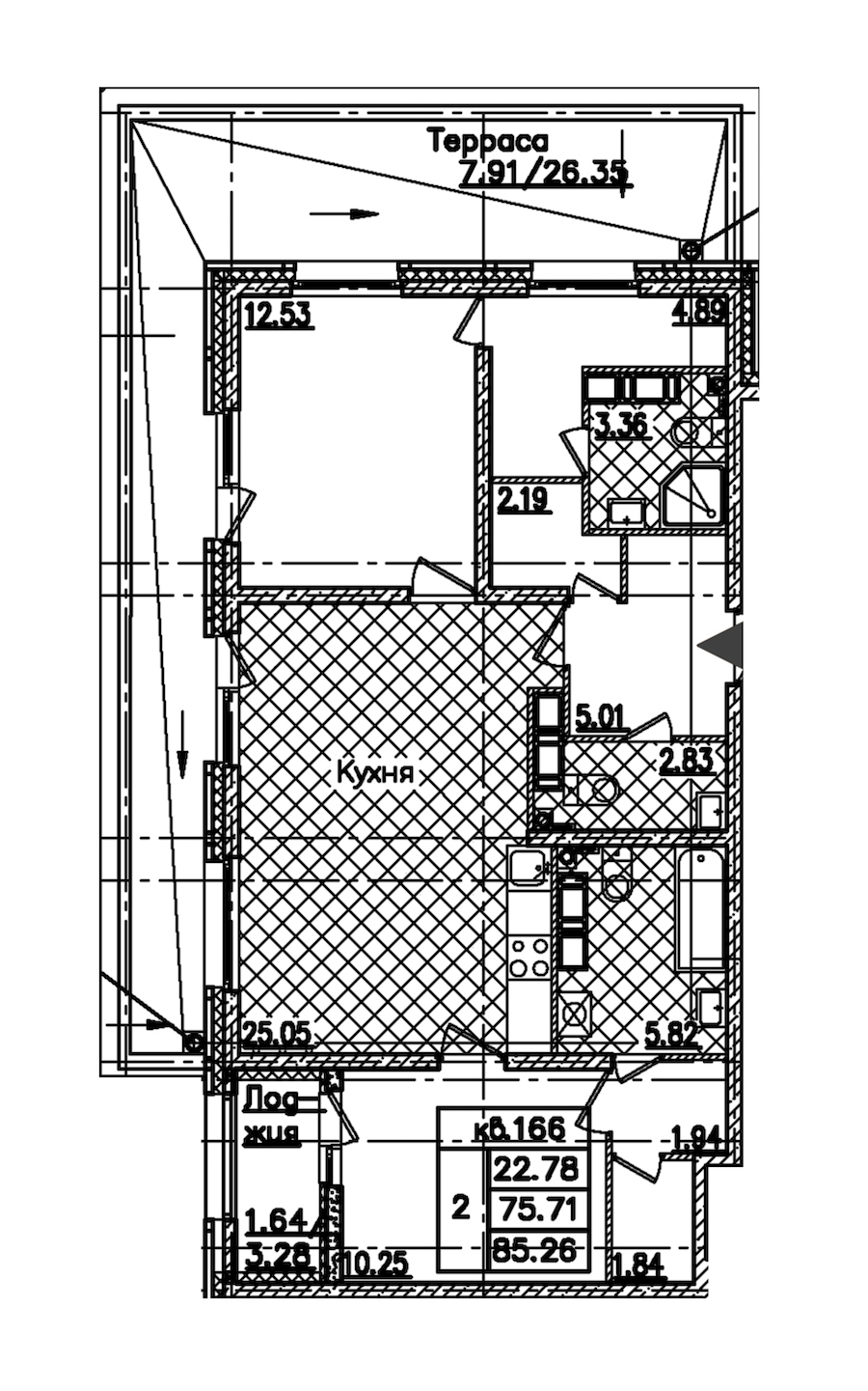 - Площадь85,26 м2