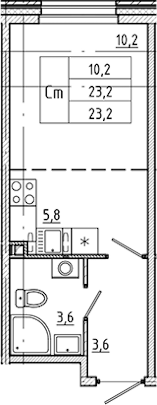 Квартира-студия на 2-ом этаже 23,2 кв.м