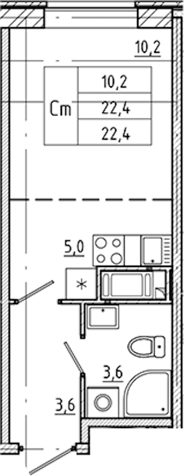 Квартира-студия на 3-ем этаже 22,4 кв.м