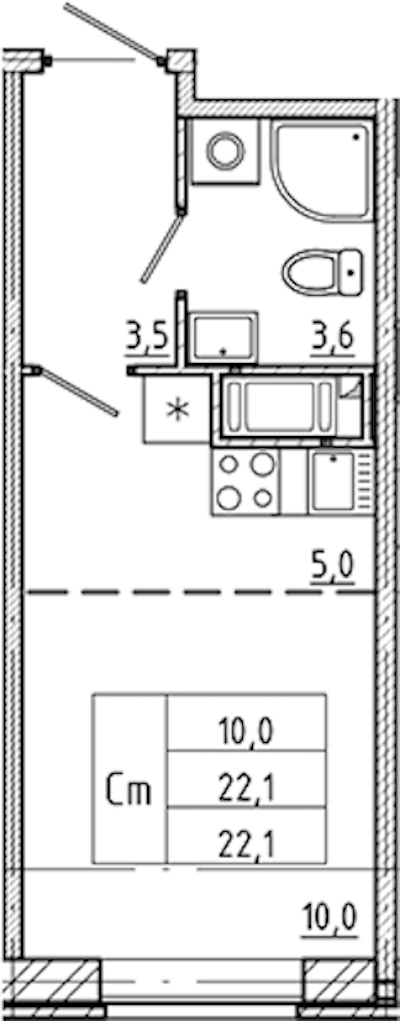 Квартира-студия на 11-ом этаже 22,1 кв.м
