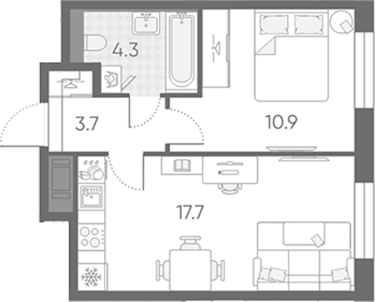 - Площадь кухни17,7 м2