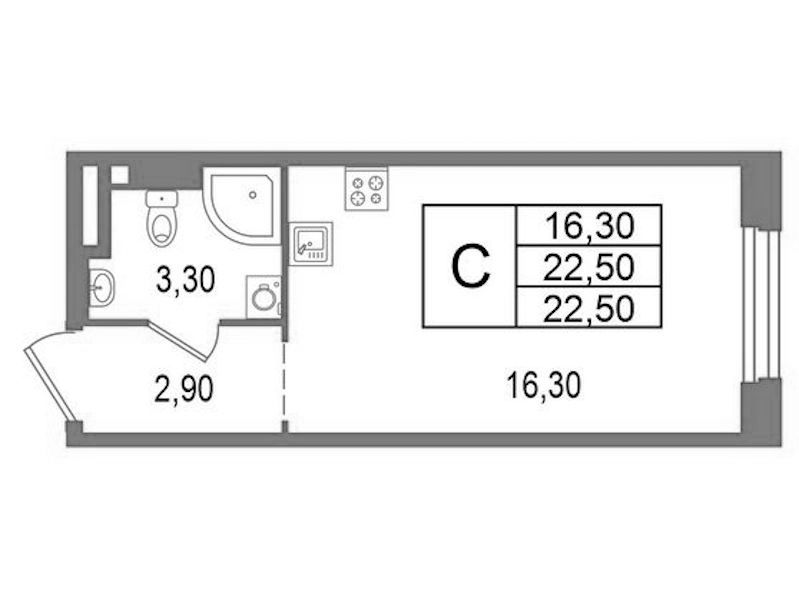 - Площадь22,5 м2