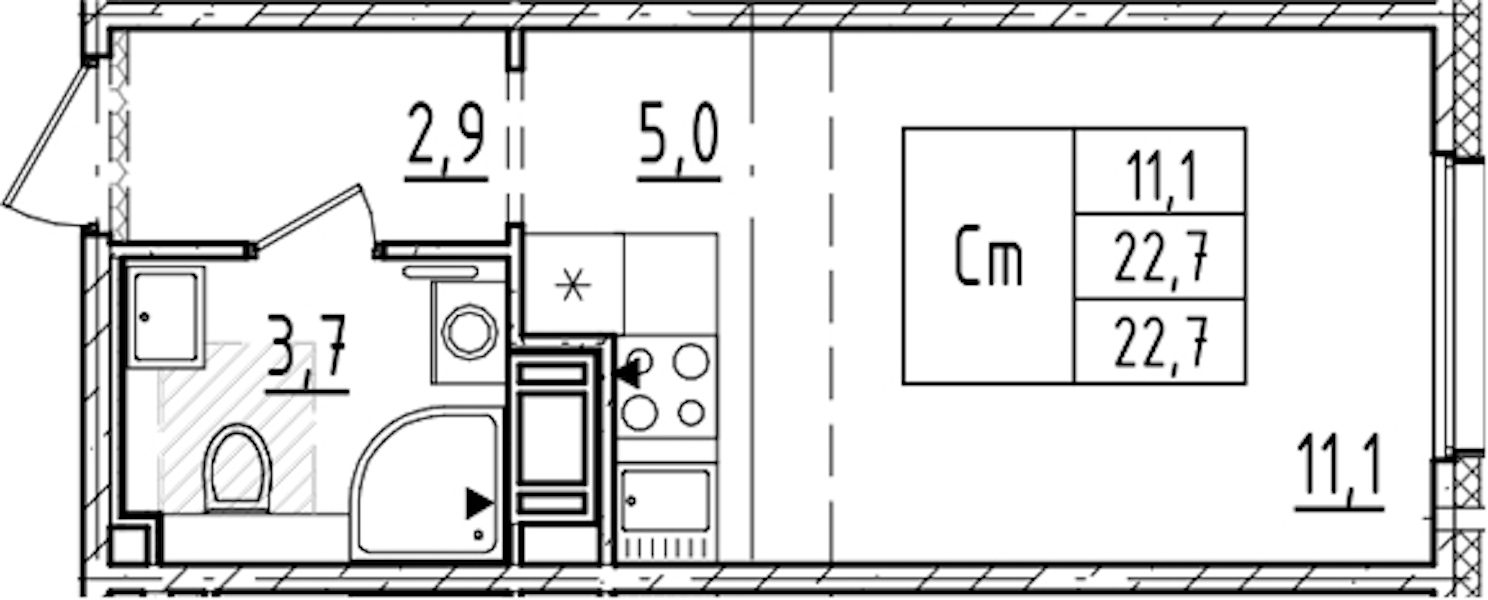 - Площадь22,7 м2