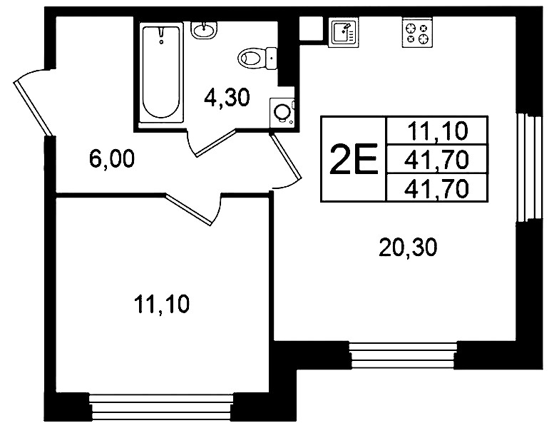 • Площадь41,7 м2