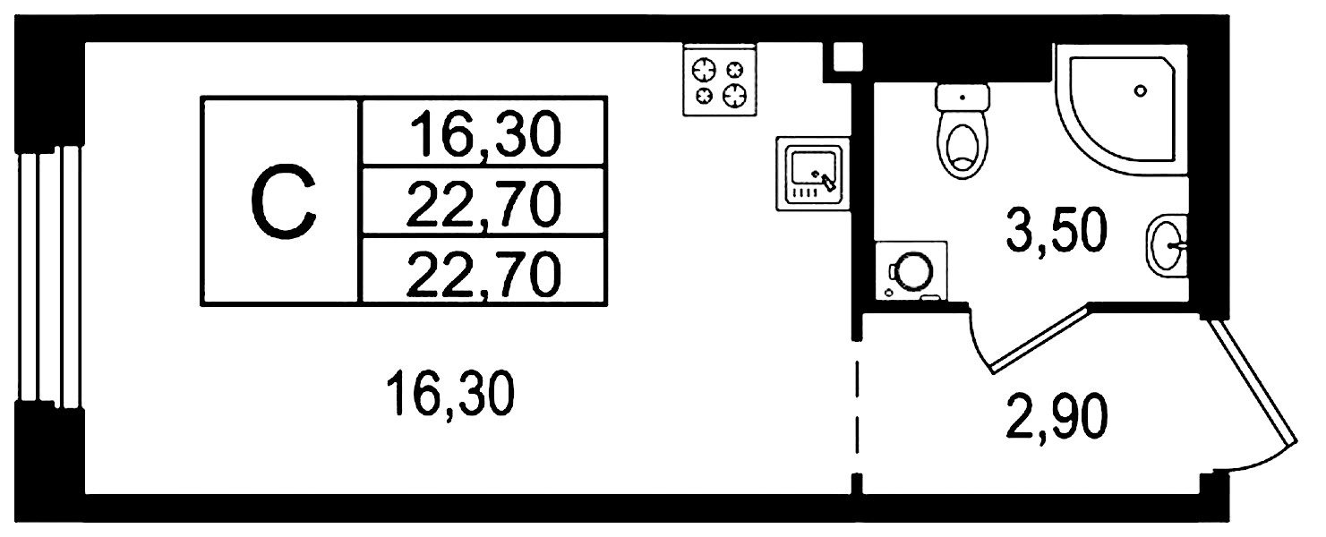 Квартира-студия на 3-ем этаже 22,7 кв.м