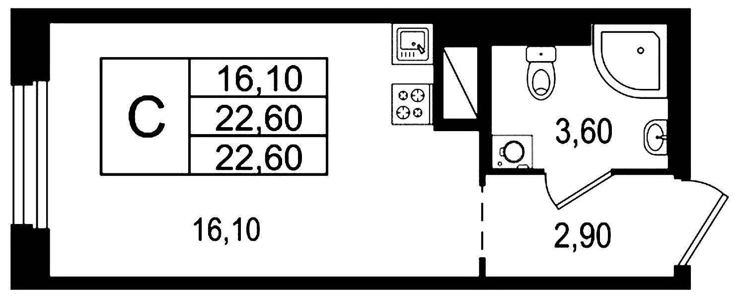 Квартира-студия на 4-ом этаже 22,6 кв.м