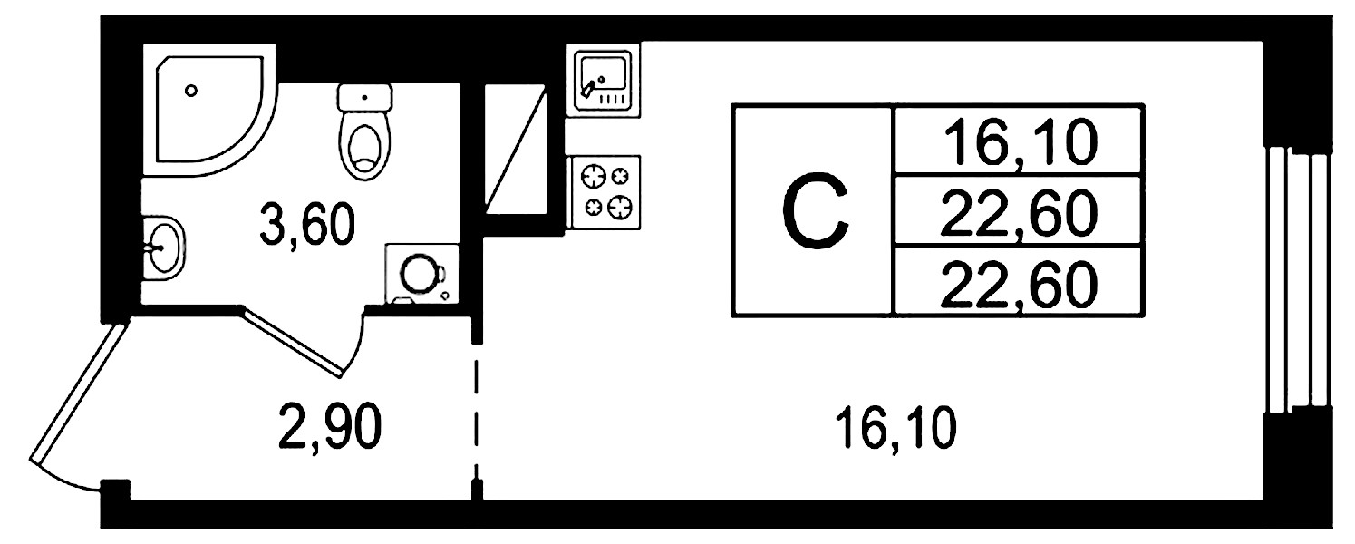 • Площадь22,6 м2