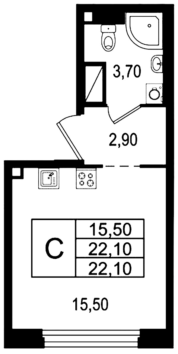 • Площадь22,1 м2