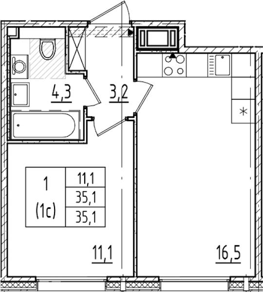 • Площадь35,1 м2