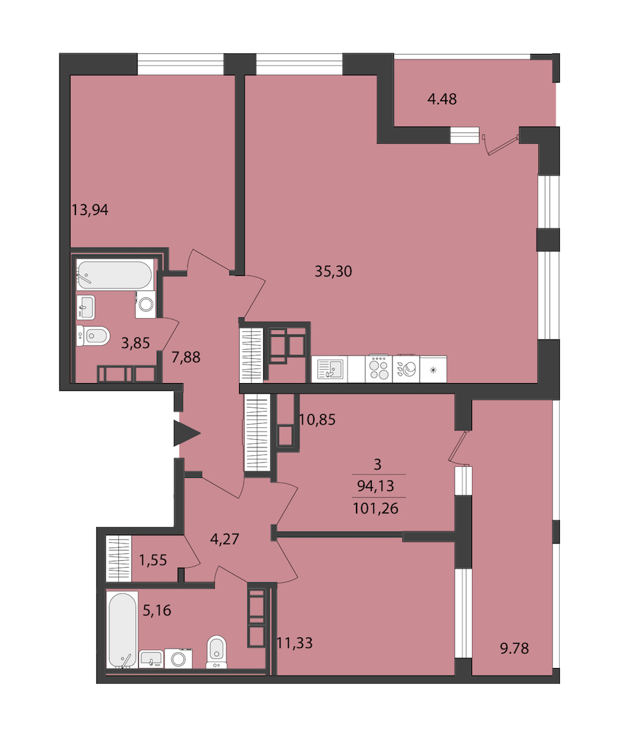 - Площадь кухни35,3 м2
