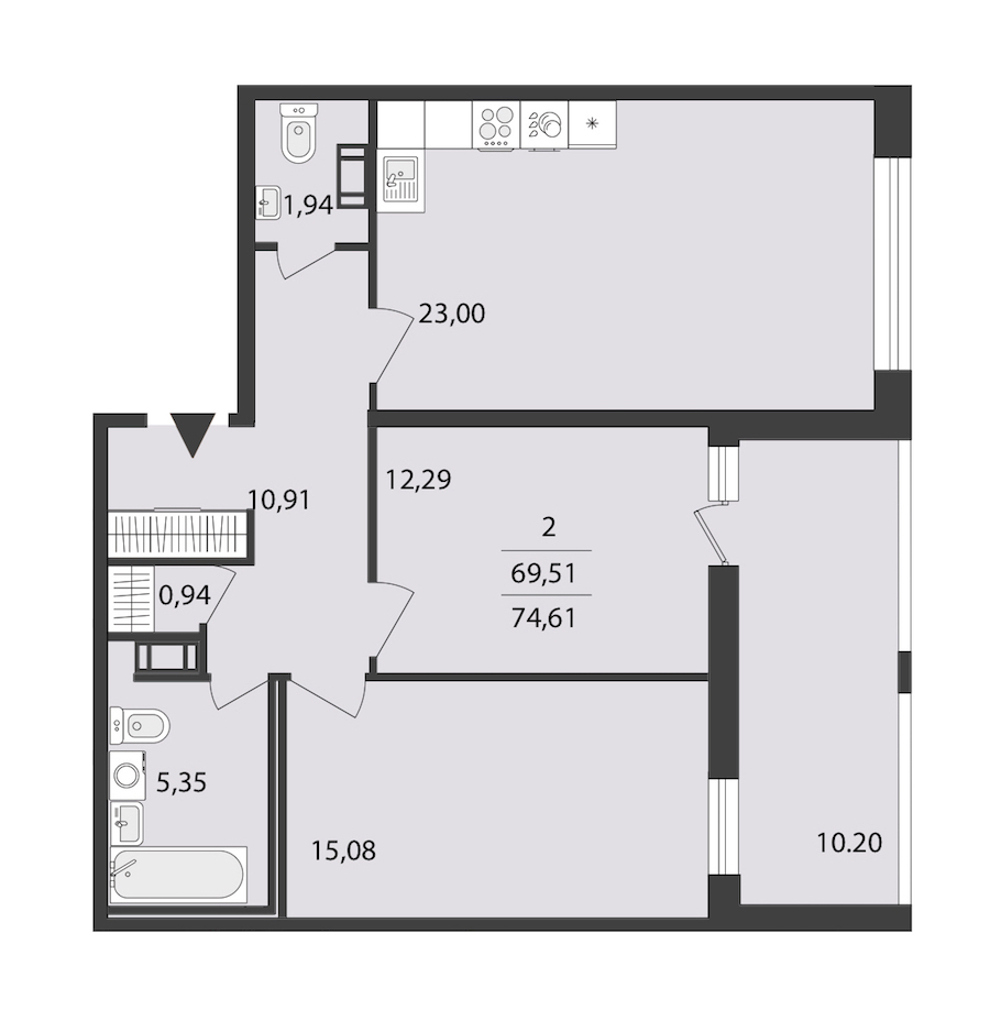 - Площадь74,61 м2