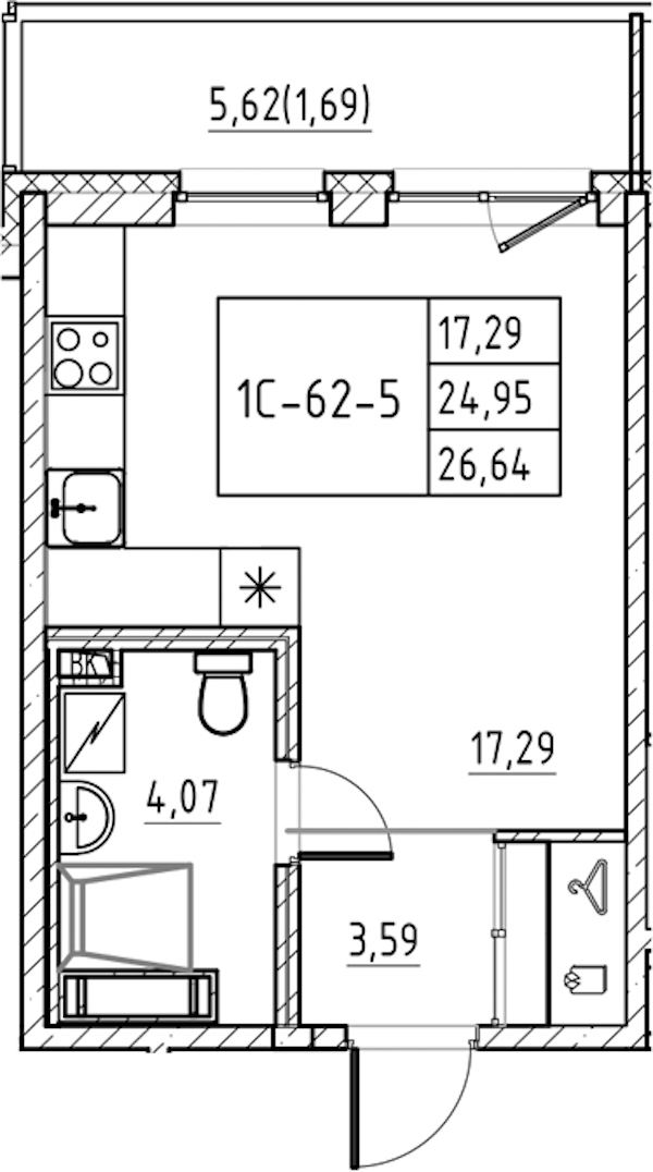 - Площадь26,64 м2