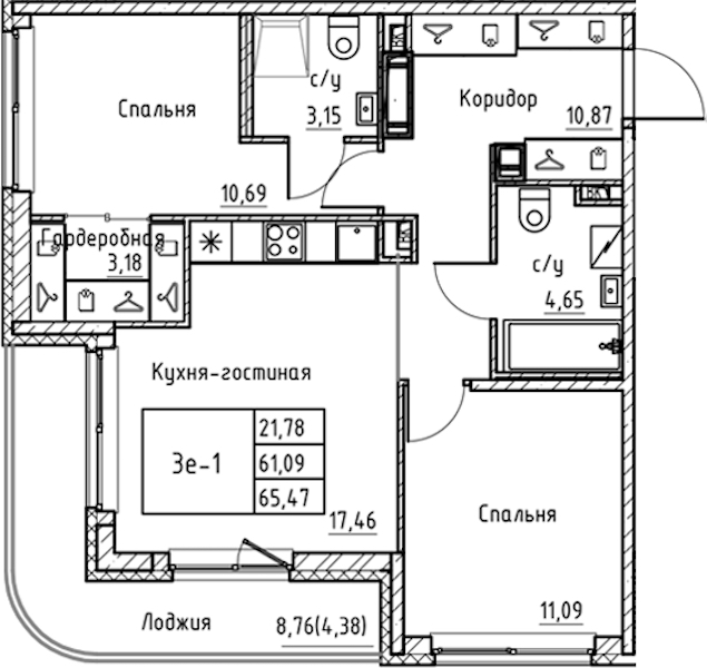 - Площадь65,47 м2
