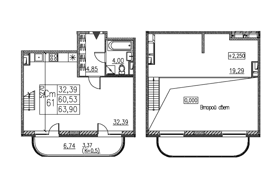 • Площадь63,9 м2