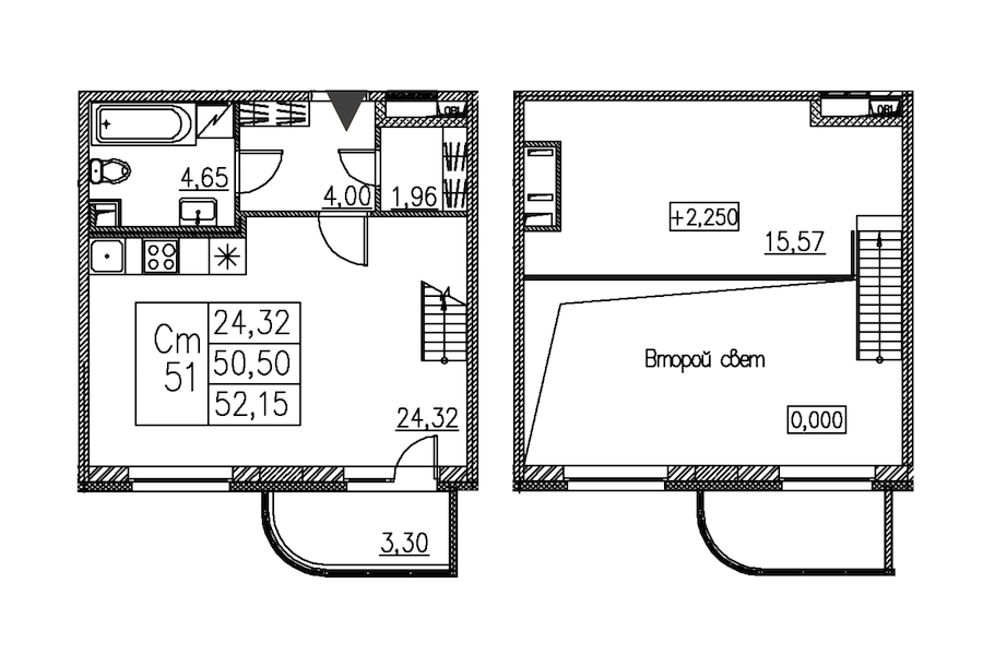 - Площадь52,15 м2
