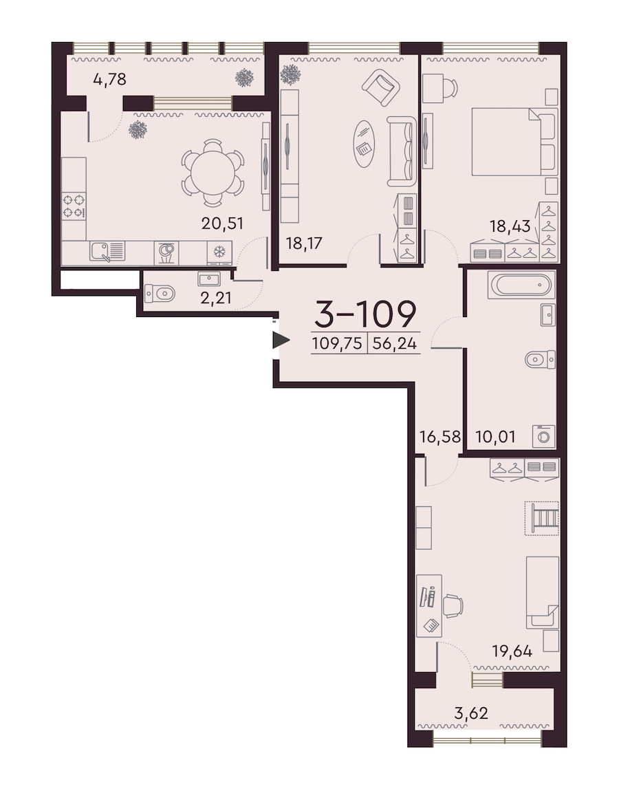 • Площадь109,75 м2