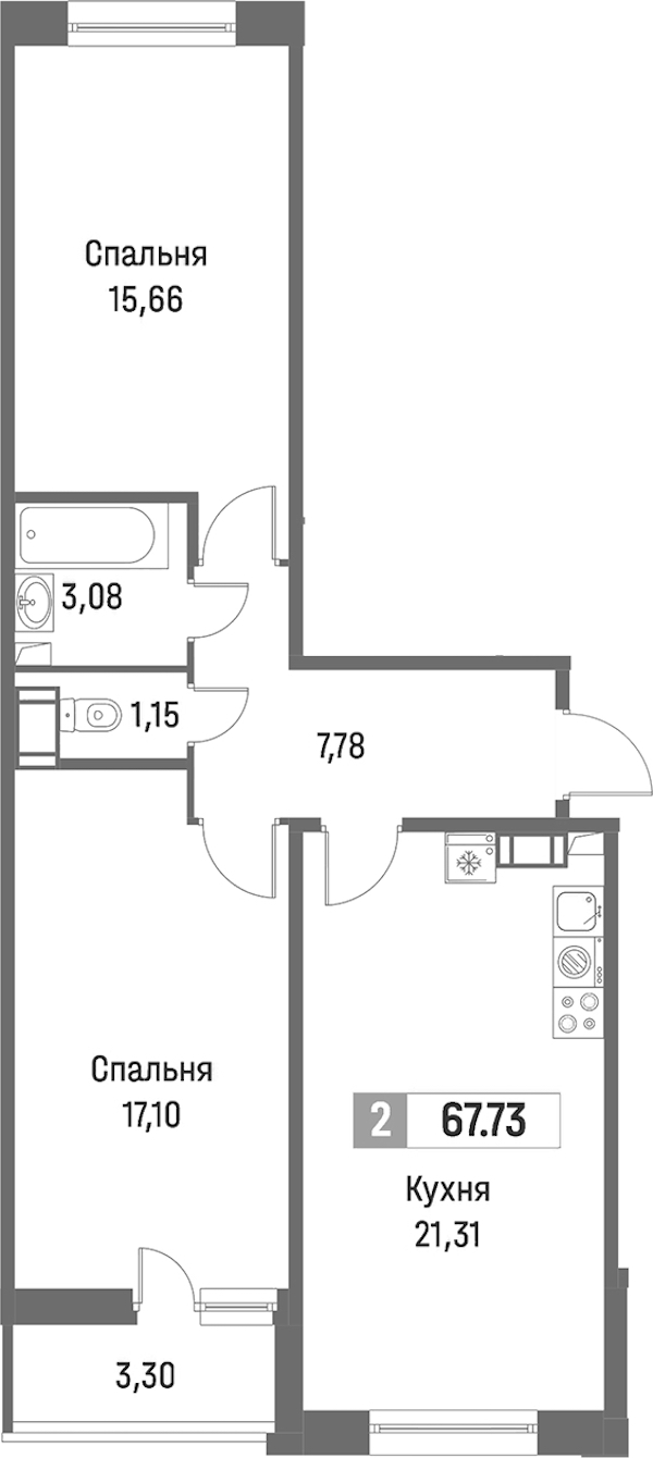 - Площадь67,73 м2