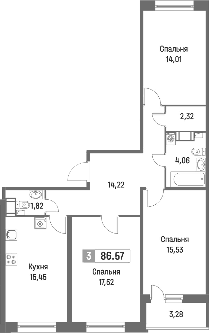 - Площадь86,57 м2