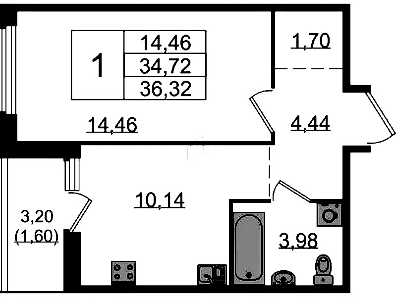 - Площадь кухни10,14 м2
