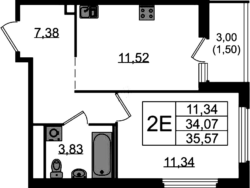 - Площадь кухни11,52 м2