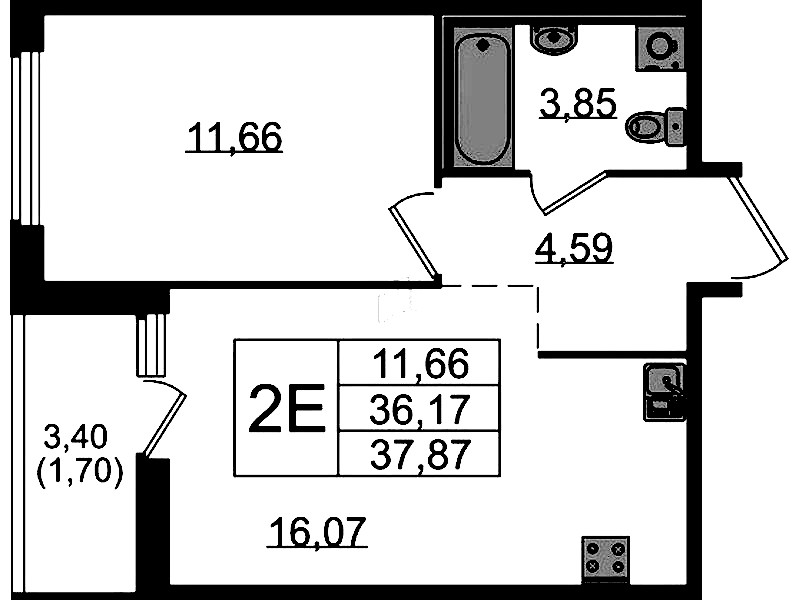 - Площадь37,87 м2