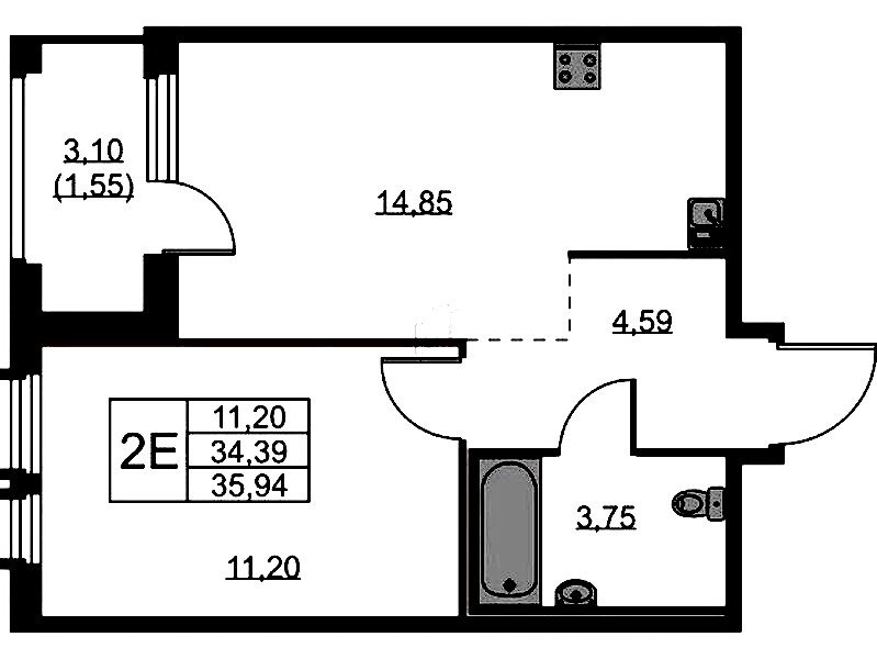 - Площадь35,94 м2